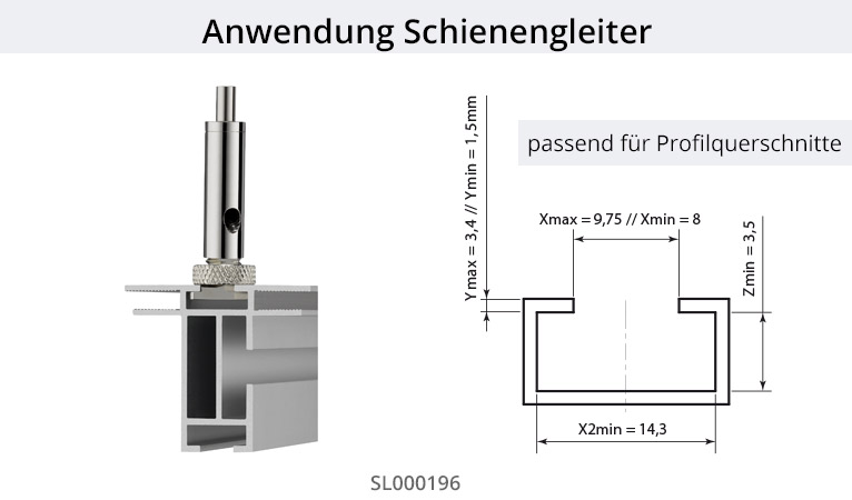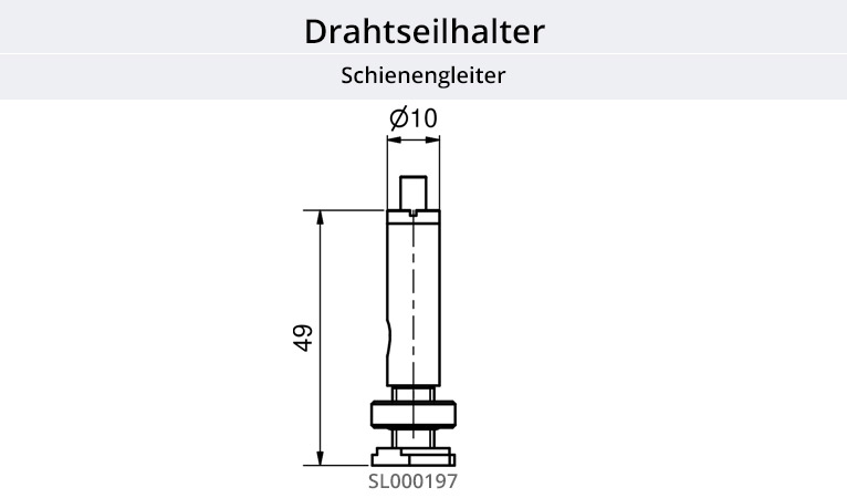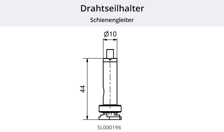 Der Drahtseilhalter Schienengleiter aus Metall ist geeignet zur Seilbefestigung an einer Aluschiene bzw. Alukederschiene. Dieser Seilspanner dient als Deckenbefestigung und gleichzeitig Höhenausgleich zwischen Decke, Drahtseil und Schienenprofil.